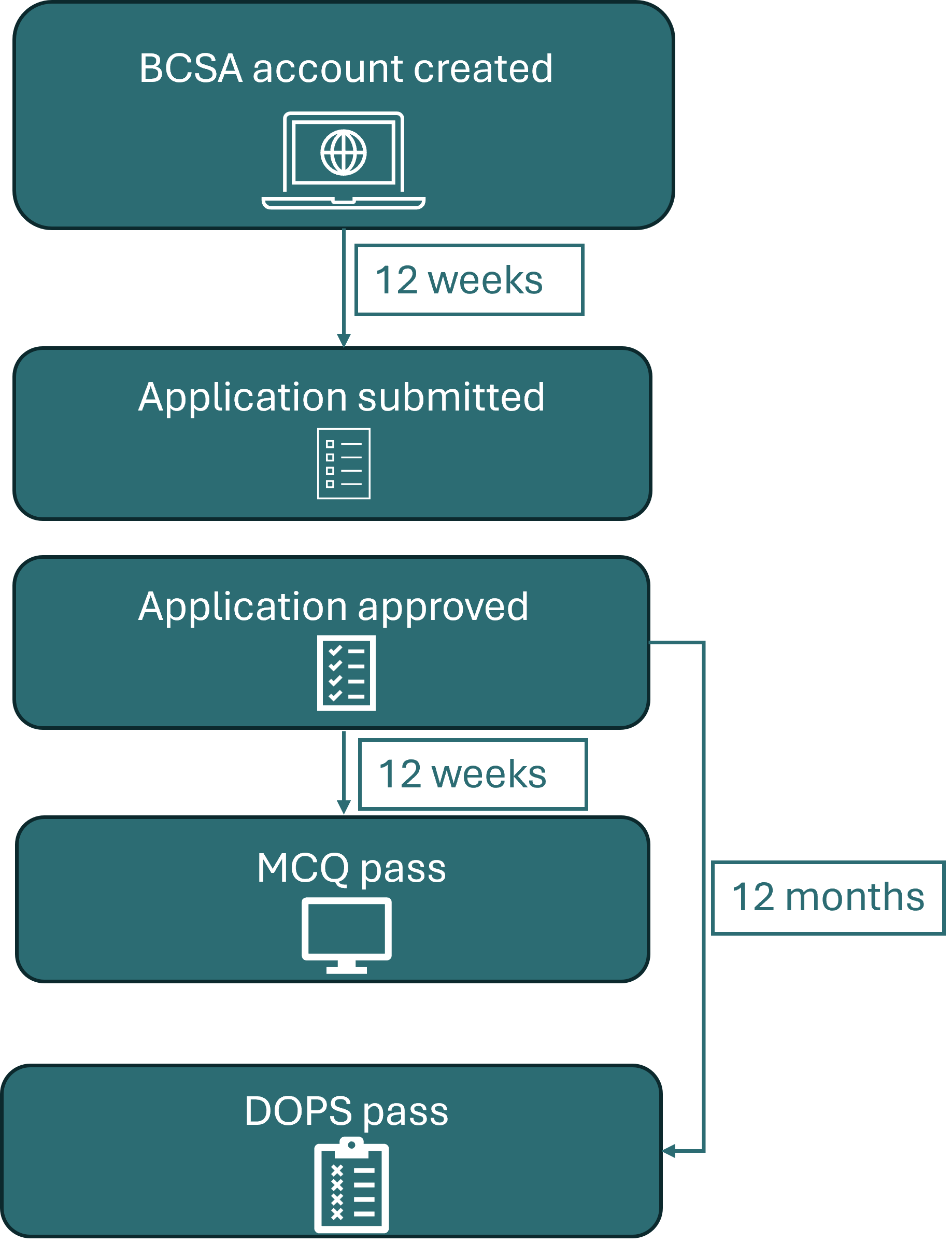 Any new candidates starting the BCSA process after the timeline update will need to adhere to the updated timeframes. Any existing candidates waiting to book a DOPS exam will have up to 12 months from their last DOPS date, if resitting, or 18 months from their application approval date before the new timeframe applies to them.